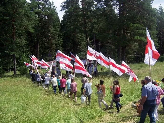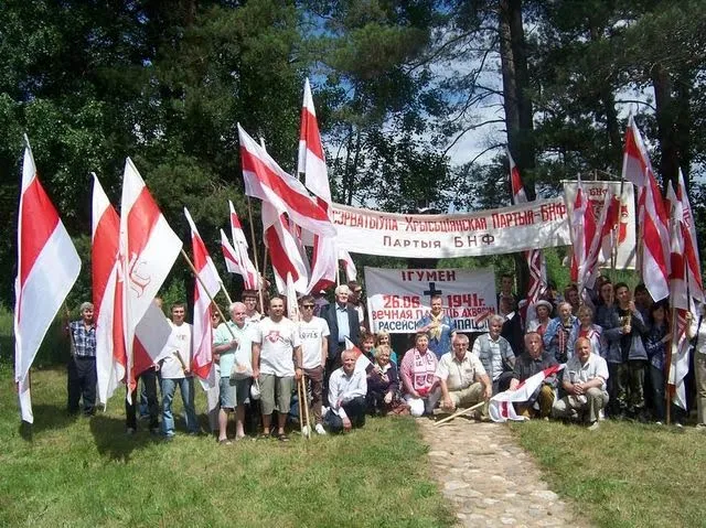 Фронтаўцы прайшлі шляхам беларускіх пакутнікаў пад нацыянальнымі Бел-Чырвона-Белымі Сьцягамі і Гербам Пагоня. На магілах ахвяраў былі ўскладзены вянкі і кветкі, запалены сьвечкі. Людзі засьпявалі гімн “Магутны Божа”. Перад грамадой выступілі сп. Юры Беленькі, выканаўца абавязкаў у Беларусі старшыні Беларускага Народнага Фронту “Адраджэньне” і КХП-БНФ, сп. Сяргей Папкоў, намесьнік старшыні Фронту і Партыі, сп. Алесь Чахольскі, адказны сакратар Фронту і Партыі, і сп. Валеры Буйвал, сакратар Фронту і Партыі.